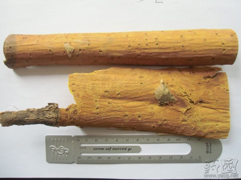 藥用部位為蕓香科植物黃檗或黃皮樹的樹皮,樹皮內(nèi)層經(jīng)炮制后入藥。味苦,性寒。清熱解毒,瀉火燥濕。主治急性細(xì)菌性痢疾、急性腸炎、急性黃疸型肝炎、泌尿系統(tǒng)感染等炎癥。外用治火燙傷、中耳炎、急性結(jié)膜炎等。