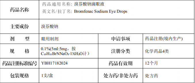 2024年8月5日,合肥華威藥業(yè)收到國家藥品監(jiān)督管理局核準(zhǔn)簽發(fā)的溴芬酸鈉滴眼液《藥品注冊證書》,批準(zhǔn)我司按照化藥4類申報的溴芬酸鈉滴眼液0.1%(5ml:5mg)上市,批準(zhǔn)文號為:國藥準(zhǔn)字H20244569。